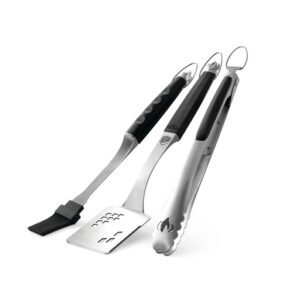 Todo maestro del asado necesita una espátula resistente, pinzas fuertes y un buen cepillo para parrilla. Este conjunto de 3 piezas de acero inoxidable BBQ de Napoleon tiene todo eso.
