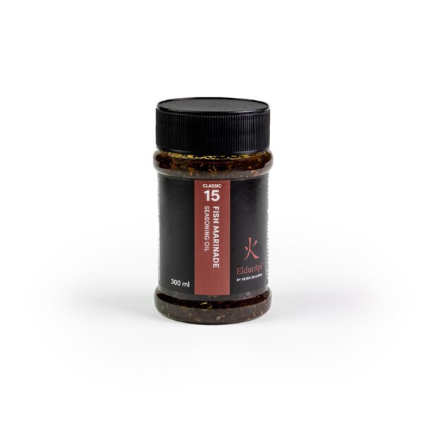 El escabeche de pescado EldurApi está diseñado para aportar frescura, acidez equilibrada y un toque aromático perfecto para pescados y mariscos cocinados al kamado o a la parrilla. Su mezcla combina vinagres suaves, especias mediterráneas y hierbas que penetran en el pescado sin deshacer su textura.
