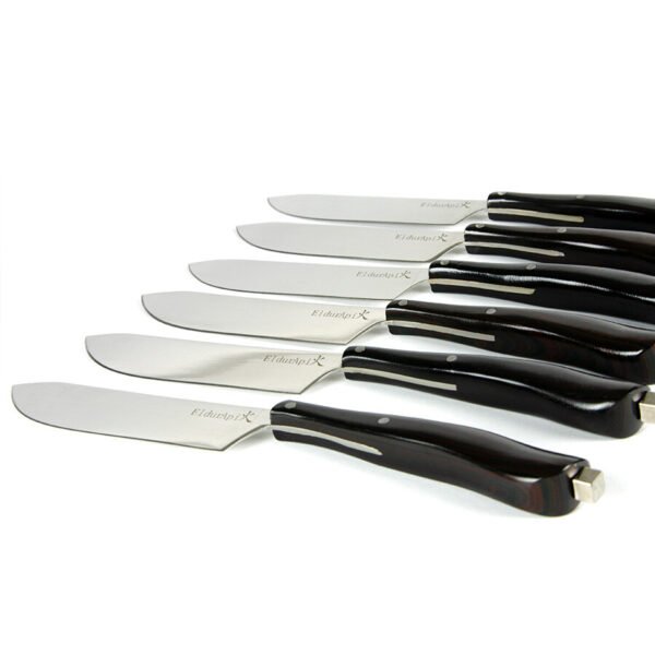 Este set de 6 cuchillos para carne ofrece un corte limpio, preciso y sin esfuerzo. Sus hojas afiladas están diseñadas para deslizarse a través de carnes jugosas, costillas o filetes sin desgarrarlos.