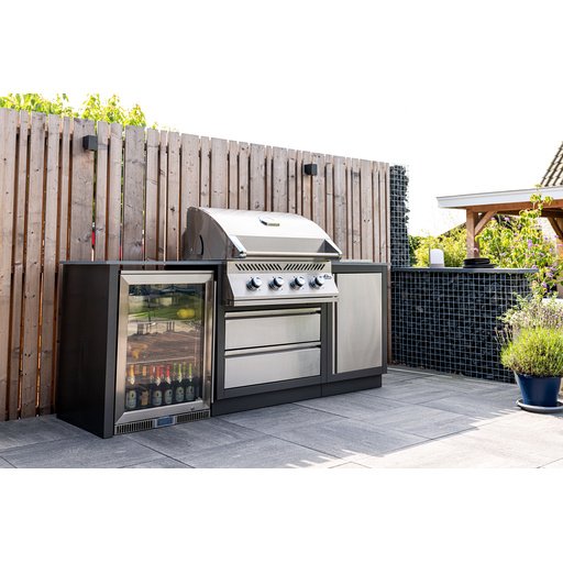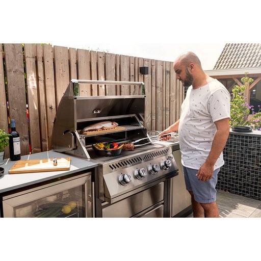 Es una opción ideal para quienes quieren disfrutar de una barbacoa de alto rendimiento sin renunciar a una estética elegante y profesional en su cocina exterior.