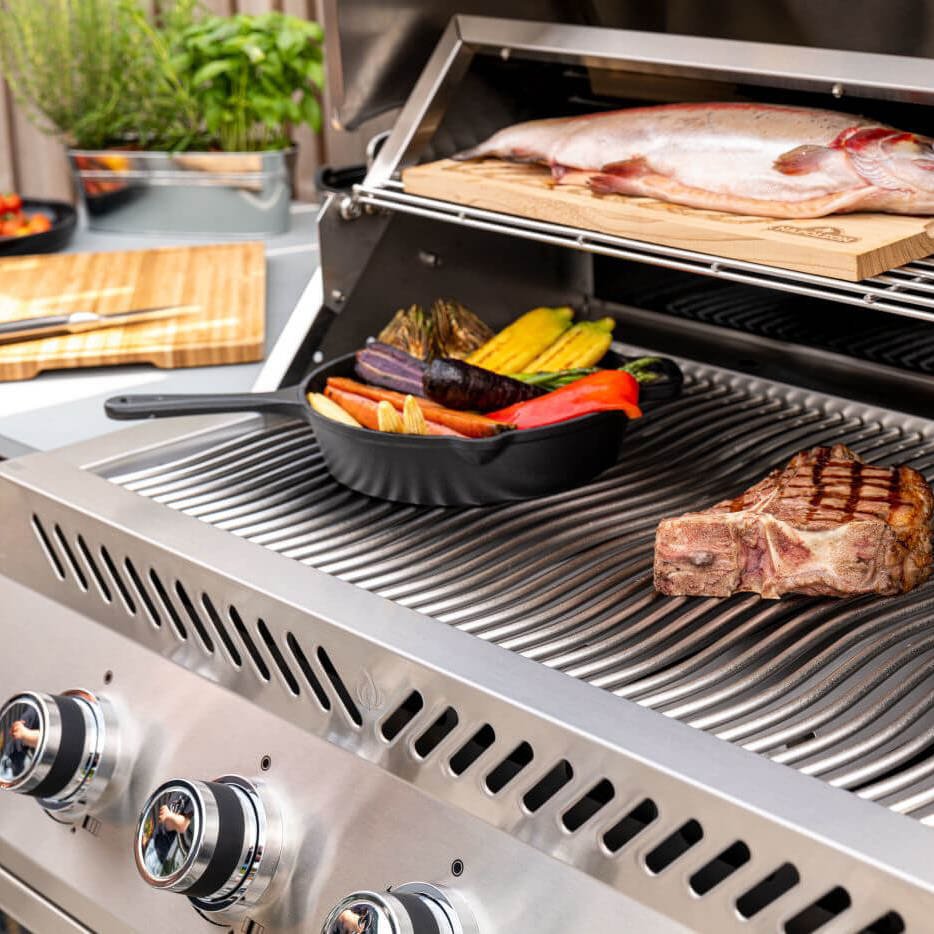 Este sistema mejora la textura, conserva los jugos y aporta las clásicas marcas de parrilla que caracterizan a una buena barbacoa.
