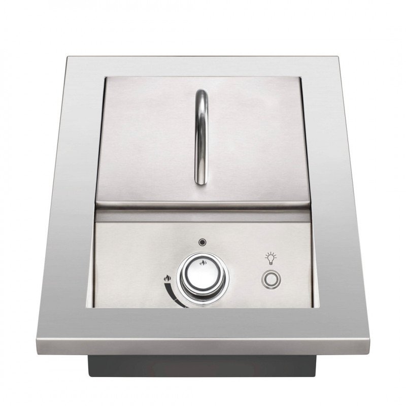 El quemador lateral pequeño de la Serie 700 para encastrar está diseñado para complementar una cocina exterior profesional. Este módulo de gas permite preparar salsas, acompañamientos o platos completos mientras utilizas la parrilla principal, transformando tu zona de barbacoa en un espacio de cocina mucho más completo.