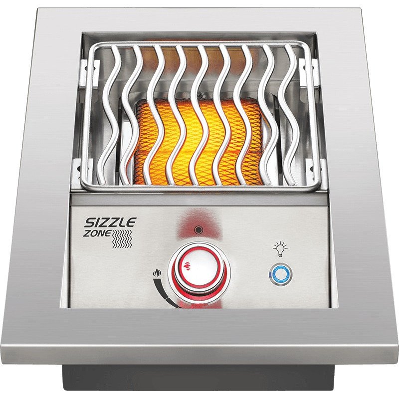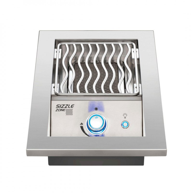 El SIZZLE ZONE™ pequeño de la Serie 700 para encastrar es un quemador infrarrojo de alta potencia diseñado para integrarse en cocinas exteriores modulares. Su sistema de calor infrarrojo alcanza temperaturas extremadamente altas en pocos segundos, lo que permite sellar carnes rápidamente y conseguir una textura crujiente por fuera mientras se mantienen jugosas por dentro.