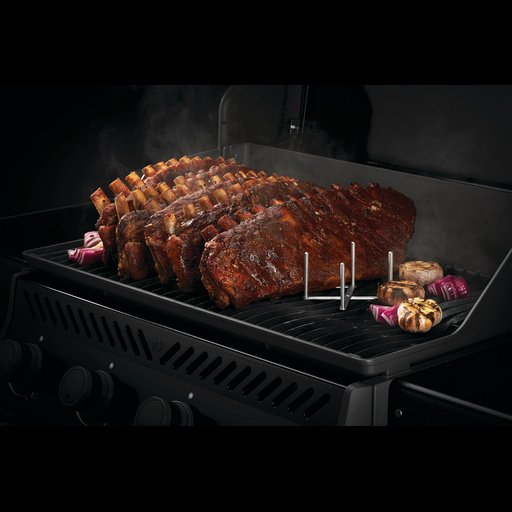El accesorio expandible para costillas de Napoleon está hecho de acero inoxidable fácil de limpiar. El diseño es perfecto para colocar de una a seis costillas. Expandalo para ocupar el lugar necesario en su barbacoa. Es apto para todos los modelos de barbacoas con carro y parrillas barbacoas. También se pliega para guardarlo de manera compacta cuando no lo usa. Para limpiar este accesorio para barbacoa, simplemente colóquelo en el lavavajillas. Con su practicidad, múltiples funciones y fácil mantenimiento, los accesorios para barbacoa de Napoleon representan un beneficio para cualquier cocina. Nuestros accesorios le proporcionan lo esencial para crear deliciosos platos asados, además de opciones para potenciar su arsenal de cocina con una amplia variedad de agregados creativos para expandir sus horizontes culinarios.