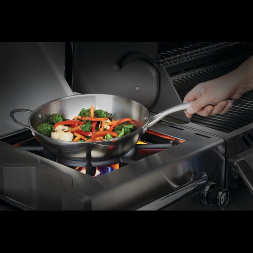 El perfecto compañero para asar, el Wok de 12 pulgadas de acero inoxidable de Napoleon cuenta con ajuste personalizado para el quemador de potencia de la parrilla de gas PRO825, pero puede usarse fácilmente para cualquier parrilla u horno de gas, eléctrico y cerámica. El wok de acero inoxidable cuenta con un interior de acabado satinado como los woks profesionales para evitar que se queme la comida. El wok de 12 pulgadas de acero inoxidable de Napoleon presenta dos manijas, una manija grande ergonómica para manipular el wok y fácilmente verter su sofrito, y la manija más pequeña para brindar estabilidad cuando tenga porciones grandes y pesadas. La estructura inferior plana significa que este wok puede ir de la parrilla u horno a la mesa sin miedo de que se vuelquen las comidas. Cree obras maestras culinarias, guisos abundantes, sopas y sofritos deliciosos con el wok de 12 pulgadas (30 cm) de acero inoxidable de Napoleon.